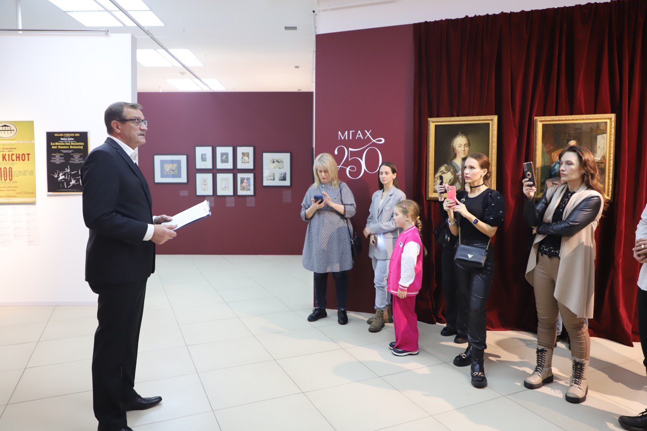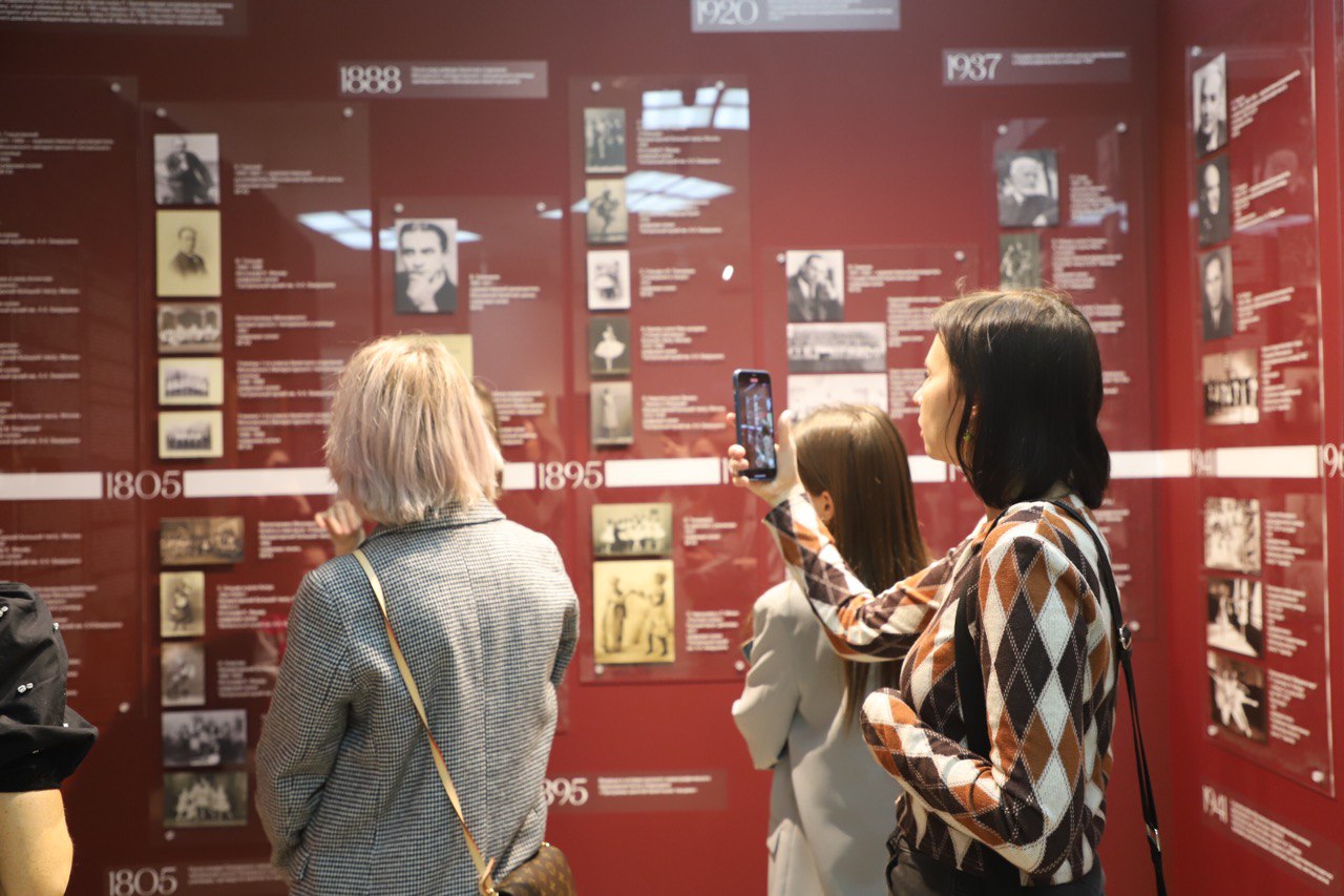 Гости посетили выставку "Звёздные страницы балета", которая посвящена истории Московской государственной академии хореографии. Одна из старейших балетных школ мира в 2023 году отметила свой 250-летний юбилей.В Диджитал-зале, превращающемся в роскошный бальный зал Екатерининского дворца, выступил образцовый коллектив бального танца "КРЕДО-ДЕНС".