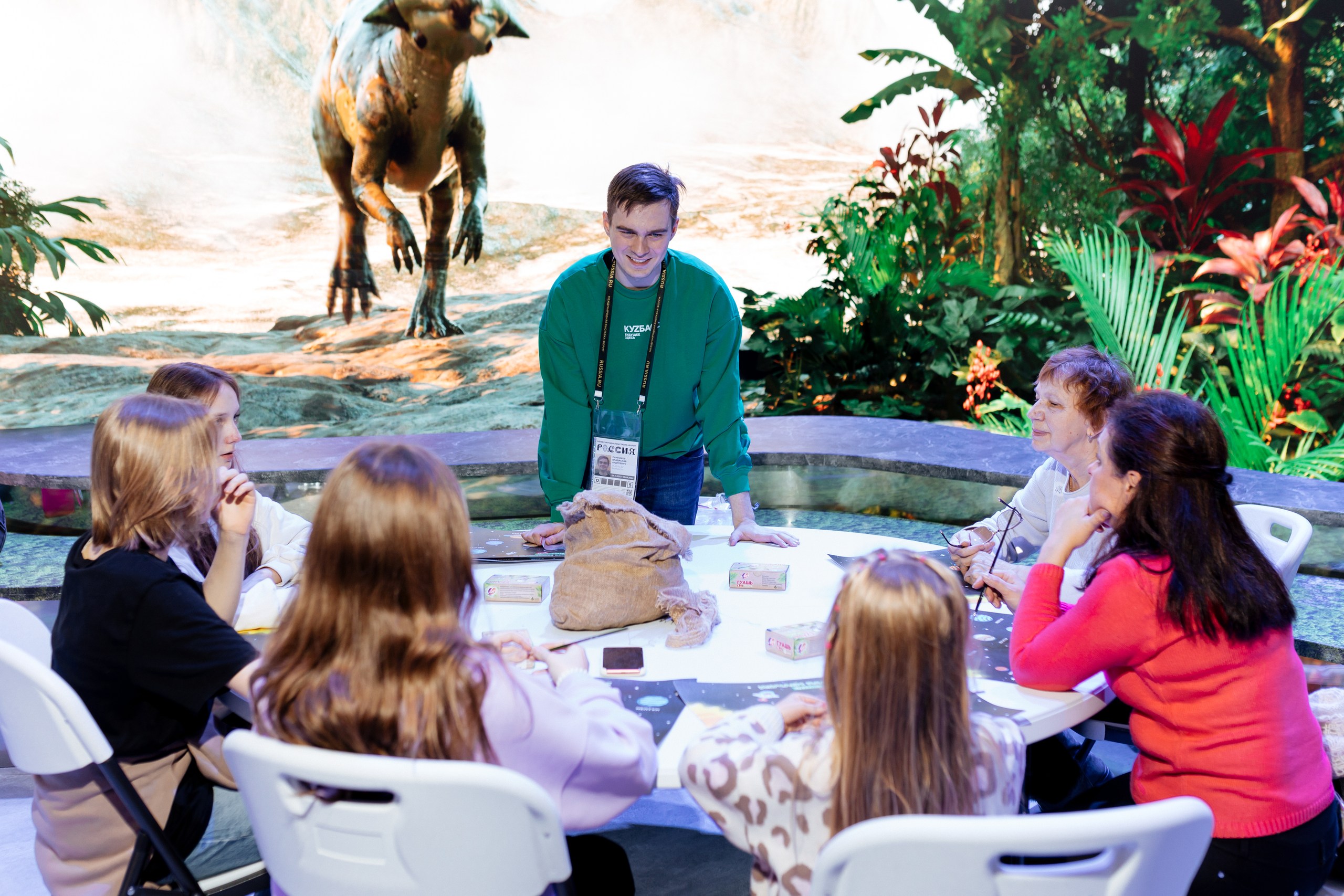 Региональные стенды ознакомили посетителей со своими традициями и творчеством. Делегация из Кузбасса представила свою программу. Сотрудники Кузбасского государственного краеведческого музея провели мастер-класс «След древней жизни», в ходе которого посетители воссоздавали из глины следы вымерших динозавров, живущих на территории Кузбасса миллионы лет назад, и окаменевшие донные отложения девонского моря, которое омывало территорию региона в Девонском периоде.
