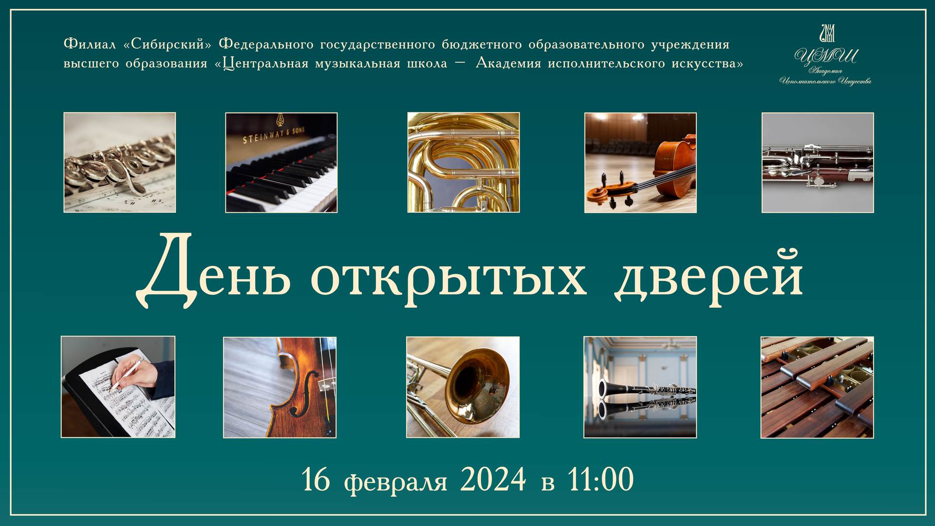 16 февраля в Филиале "Сибирский" Центральной музыкальной школы - Академии исполнительского искусства состоится День открытых дверей