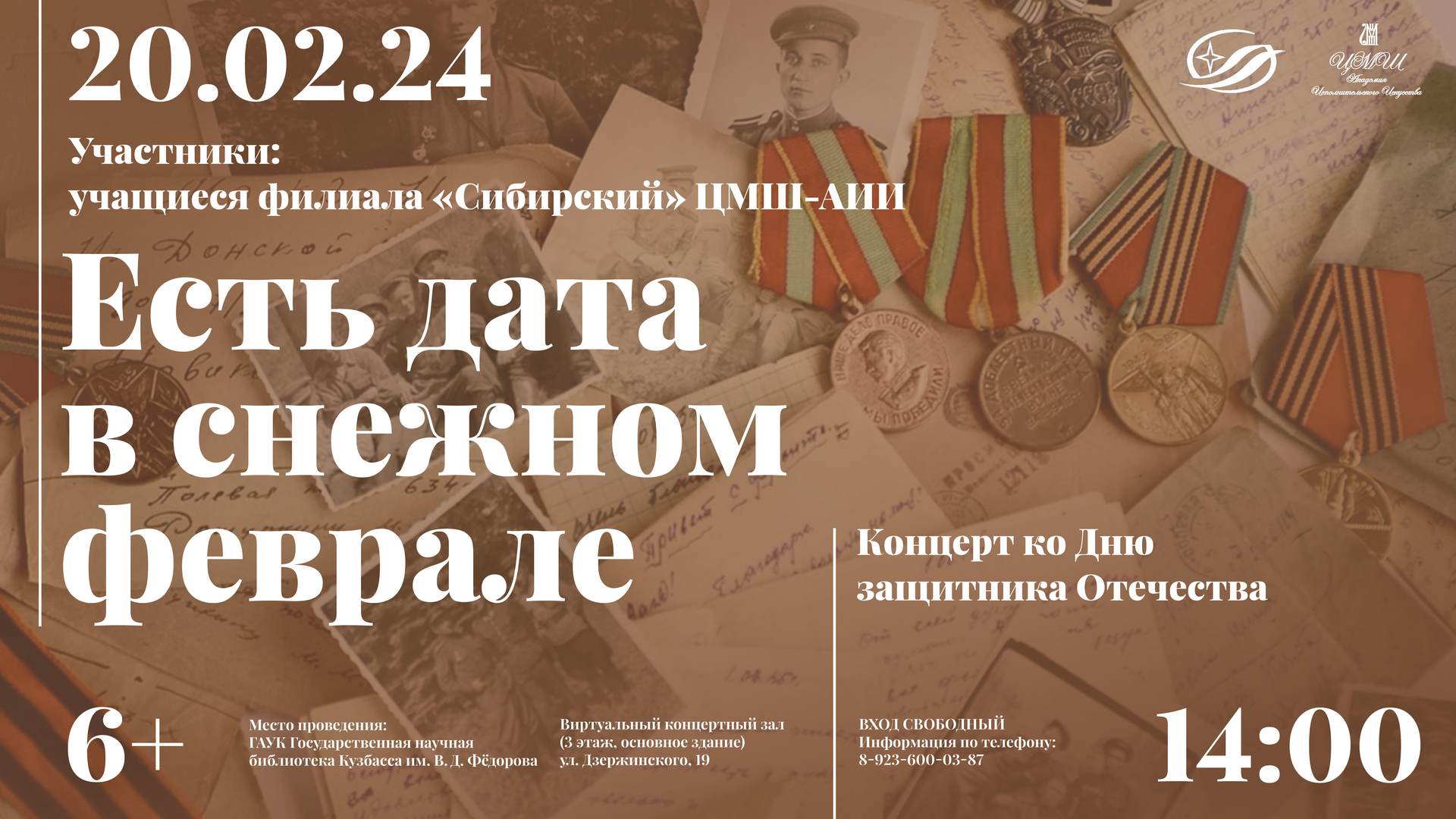 20 февраля в 14:00 в Государственной научной библиотеке Кузбасса имени В. Д. Федорова состоится концерт учащихся филиала «Сибирский» Центральной Музыкальной Школы - Академии Исполнительского Искусства.День защитника Отечества – праздник тех, кто считает своим долгом беречь родную землю, защищать ее интересы, это День сильных, мужественных, твердых духом людей, способных отдать жизнь за Родину.
