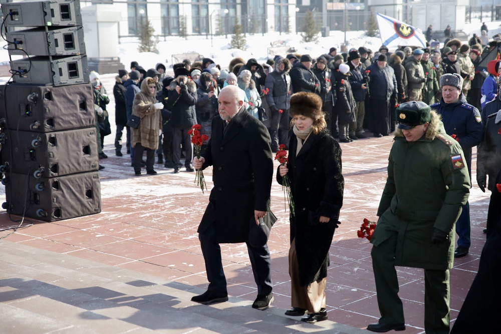 В Кемерове прошел торжественный митинг, посвященный Дню защитника Отечества, и возложение цветов к Мемориалу Воину-Освободителю. Там собрались более 2,5 тысяч кузбассовцев – губернатор, ветераны боевых действий, юнармейцы, кадеты, общественники, студенты, представители силовых структур и другие жители.«Самоотверженность, храбрость – все те традиции, которые были присущи русскому воину еще со времен Александра Невского. Мы сегодня собрались здесь у мемориала, на котором увековечена память Героев Советского Союза, полных кавалеров орденов Славы, Героев Российской Федерации 12 субъектов СФО. За время СВО уже 64 сибиряка получили высшее звание Героя России. Все эти имена будут здесь. Мы помним всех, и тех, кто погиб, и кто сейчас в строю защищает нашу Родину. С этой площади наши мобилизованные уходили на фронт, здесь же мы все вместе отпразднуем Победу», – сказал на митинге губернатор Сергей Цивилев.