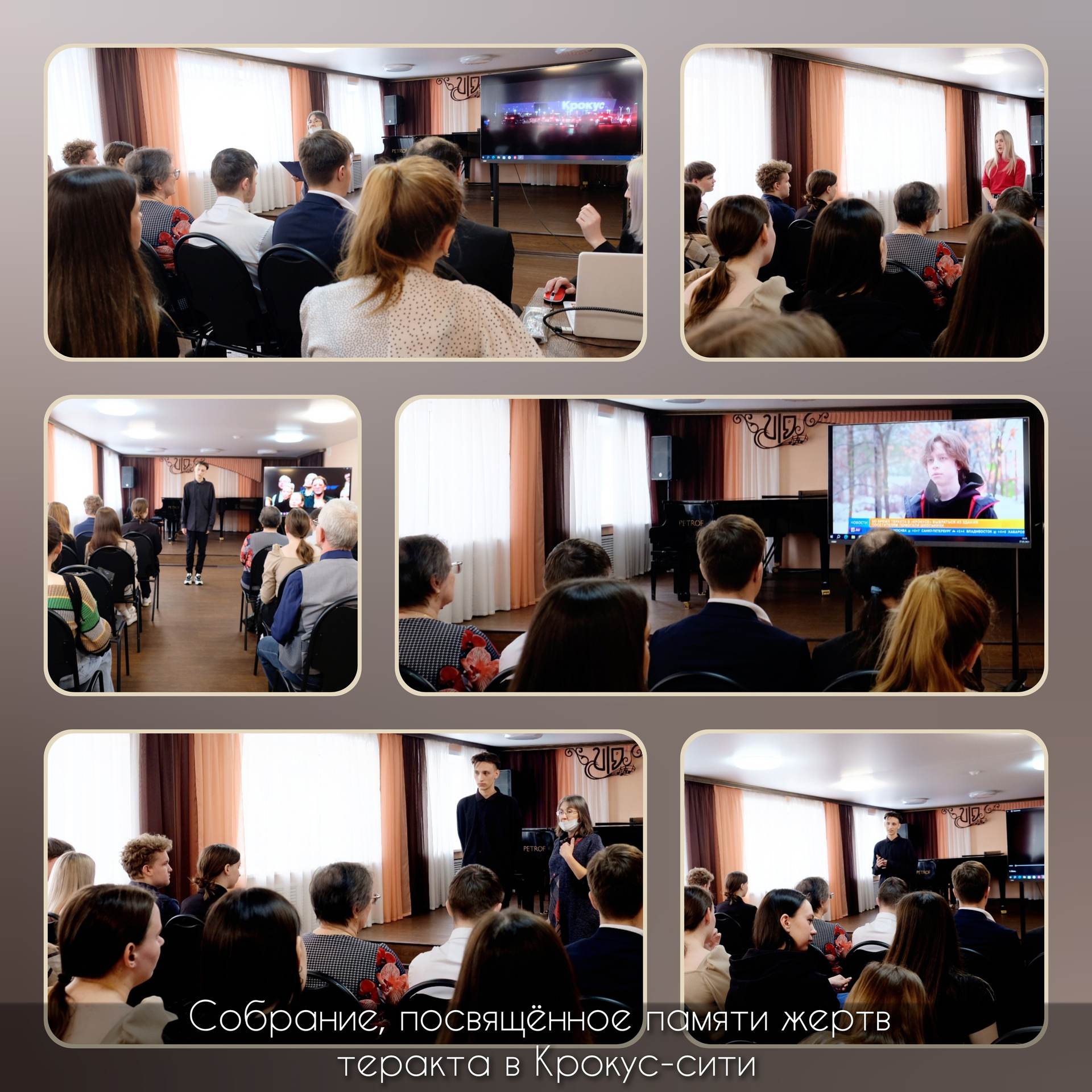 В Прокопьевском колледже культуры и искусств прошло собрание, посвященное памяти жертв Крокус-сити-холлаСобрание коллектива студентов и сотрудников, прошедшее 27 марта в колледже, было посвящено памяти жертв Крокус-сити-холла, а также сплоченности перед угрозой терроризма.
