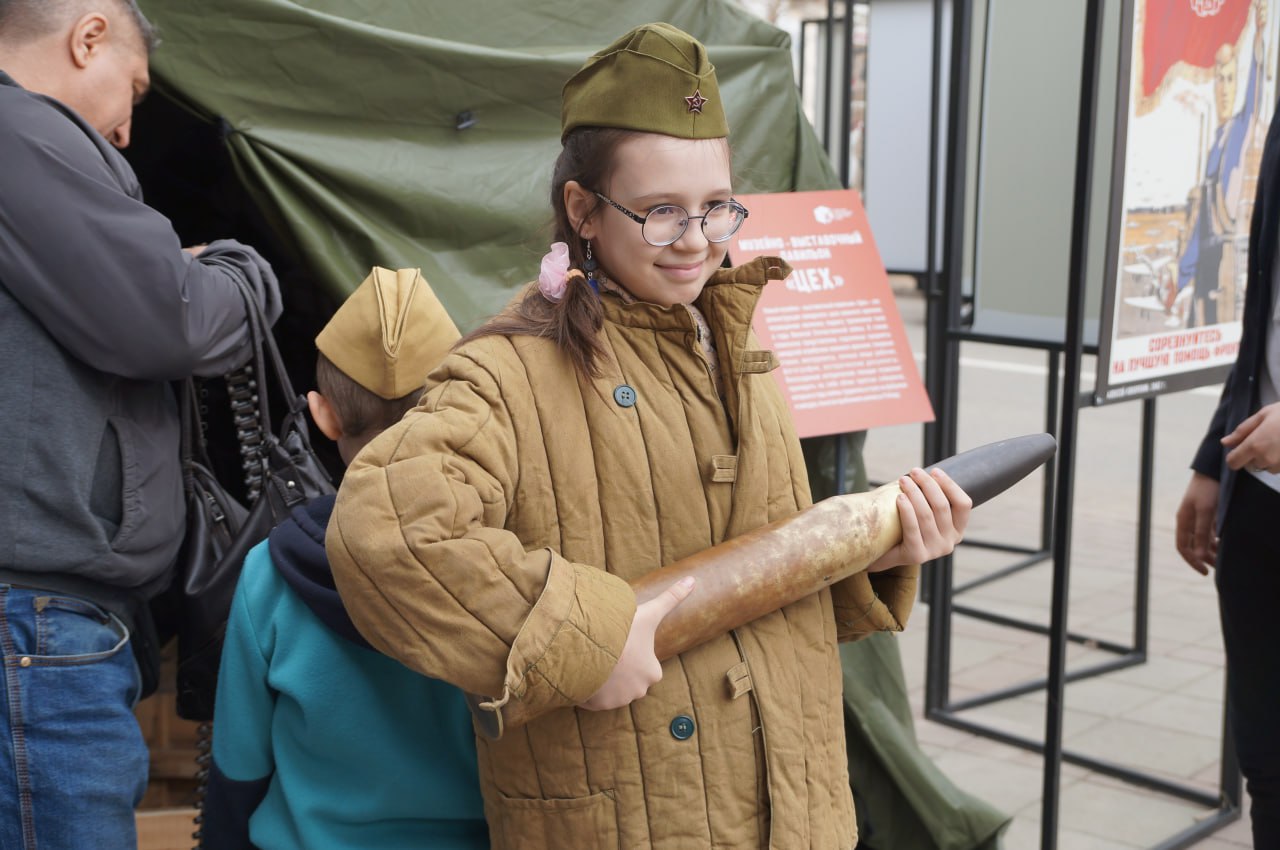 1 мая на площадке у отдела военной истории Кузбасского краеведческого музея в Кемерове откроется павильон «Цех» — это реконструкция заводского цеха военного времени, где будут представлены подлинные предметы заводской атрибутики: токарные станки, инструменты, личные вещи рабочих, фотографии, исторические документы.