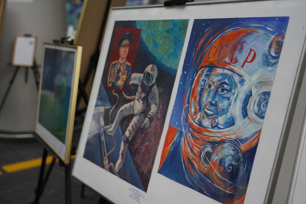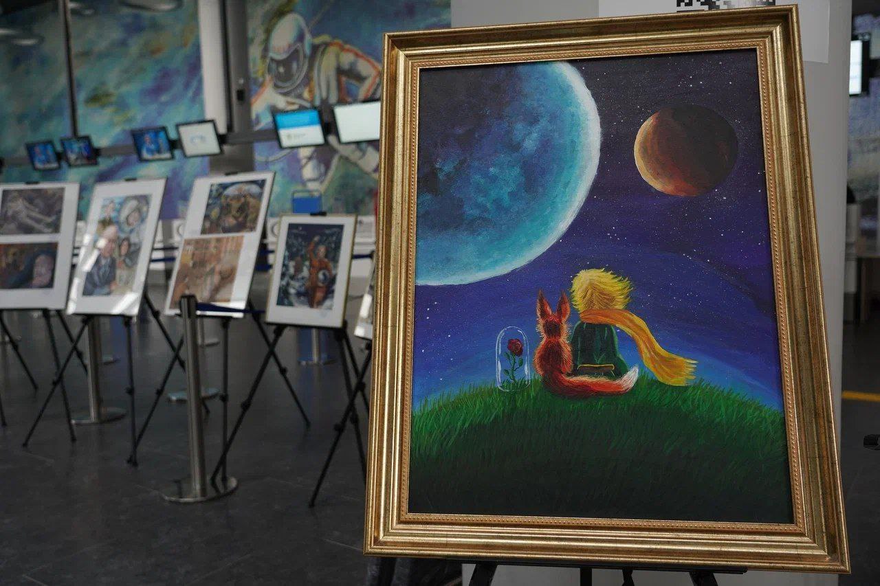 На выставке в аэропорту г. Кемерово представлено 70 лучших творческих работ призёров конкурса этого года «Звездный путь Алексея Леонова». В очном формате поступило 550 заявок из 45 детских школ искусств и детских художественных школ Кузбасса. Итоги будут подведены в октябре.
