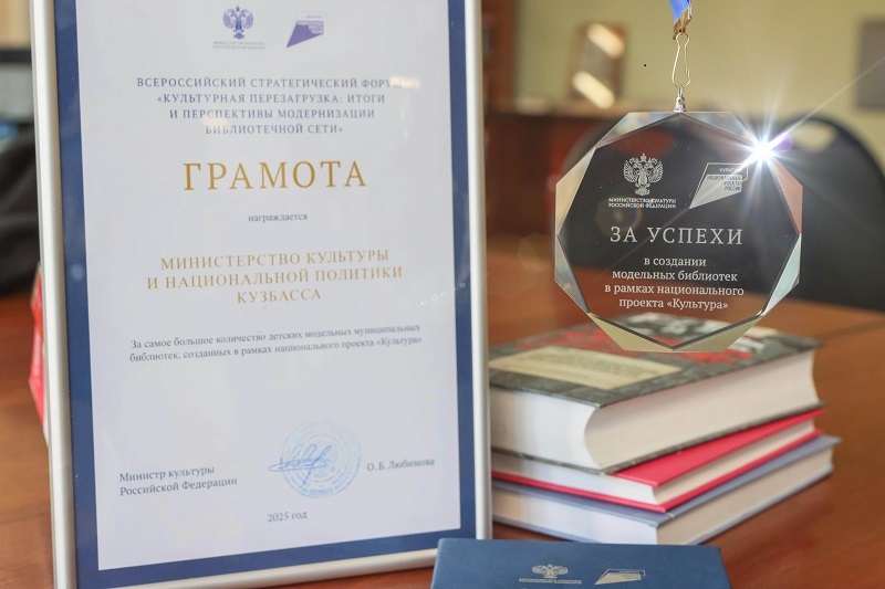 Кузбасс был отмечен Грамотой Министерства культуры Российской Федерации за самое большое количество детских модельных муниципальных библиотек, созданных в рамках национального проекта «Культура», и памятной медалью, которую вручили заместитель министра культуры Российской Федерации Жанна Алексеева и генеральный директор Российской государственной библиотеки Вадим Дуда.По итогу шести лет реализации национального проекта «Культура» в России открыли 1229 модернизированных библиотек, из них 25 – в Кузбассе. Красивый дизайн, комфортное и доступное пространство, обновленные библиотечные фонды, доступ к новейшим информационным технологиям привлекают в библиотеки новых читателей. Так, количество посещений модельных библиотек Кузбасса выросло на 25% и составило 725,6 тыс. человек.