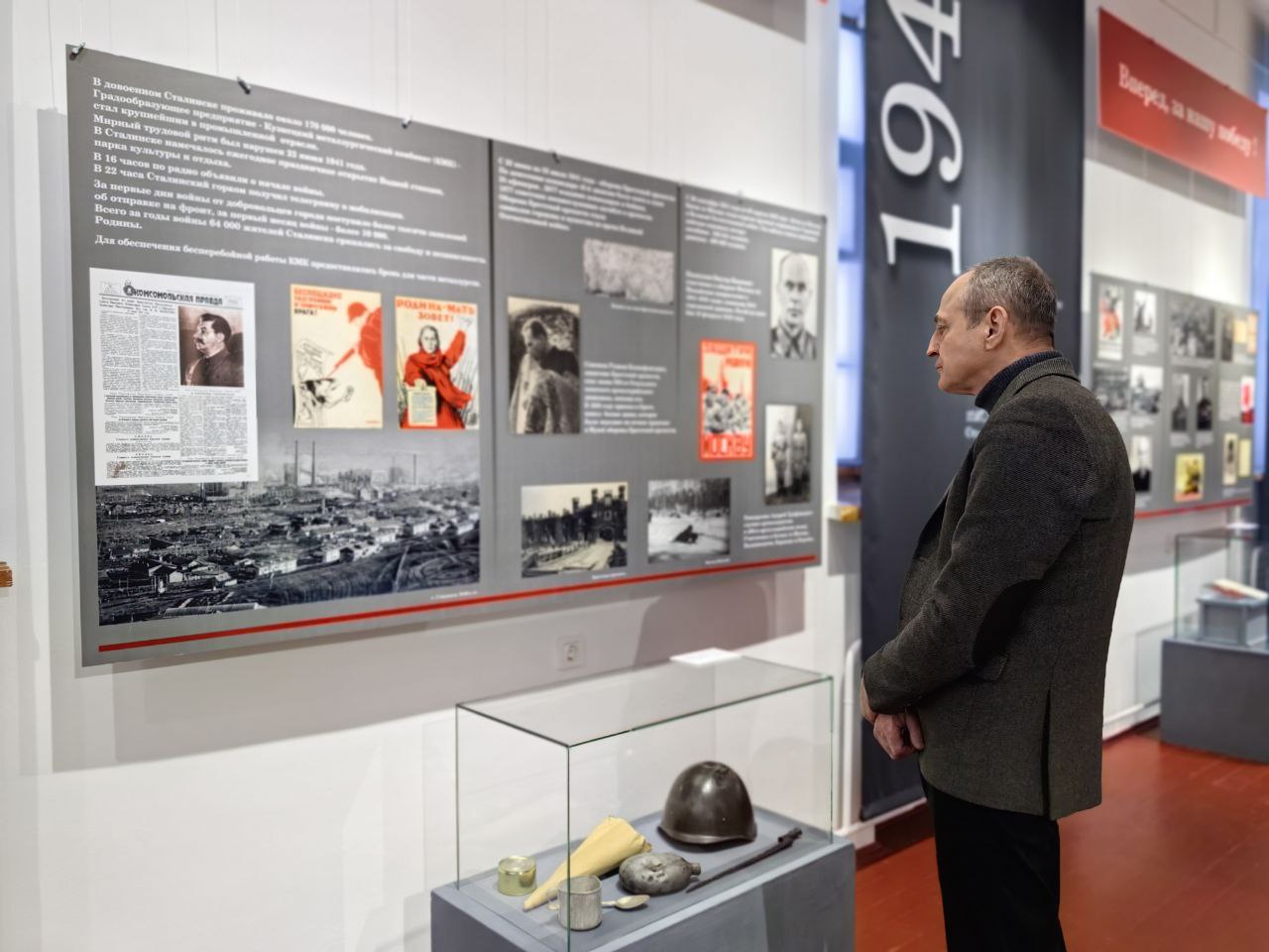 Выставка сохраняет и популяризирует память о тех страшных временах и героизме Советского народа. Проект поделен на шесть разделов: 1941, 1942, 1943, 1944, 1945 и 2025 годы.Экспозиция раскрывает темы Сталинска и его жителей. В центре внимания герои-земляки - участники боевых действий и тыловики, оборонные предприятия.