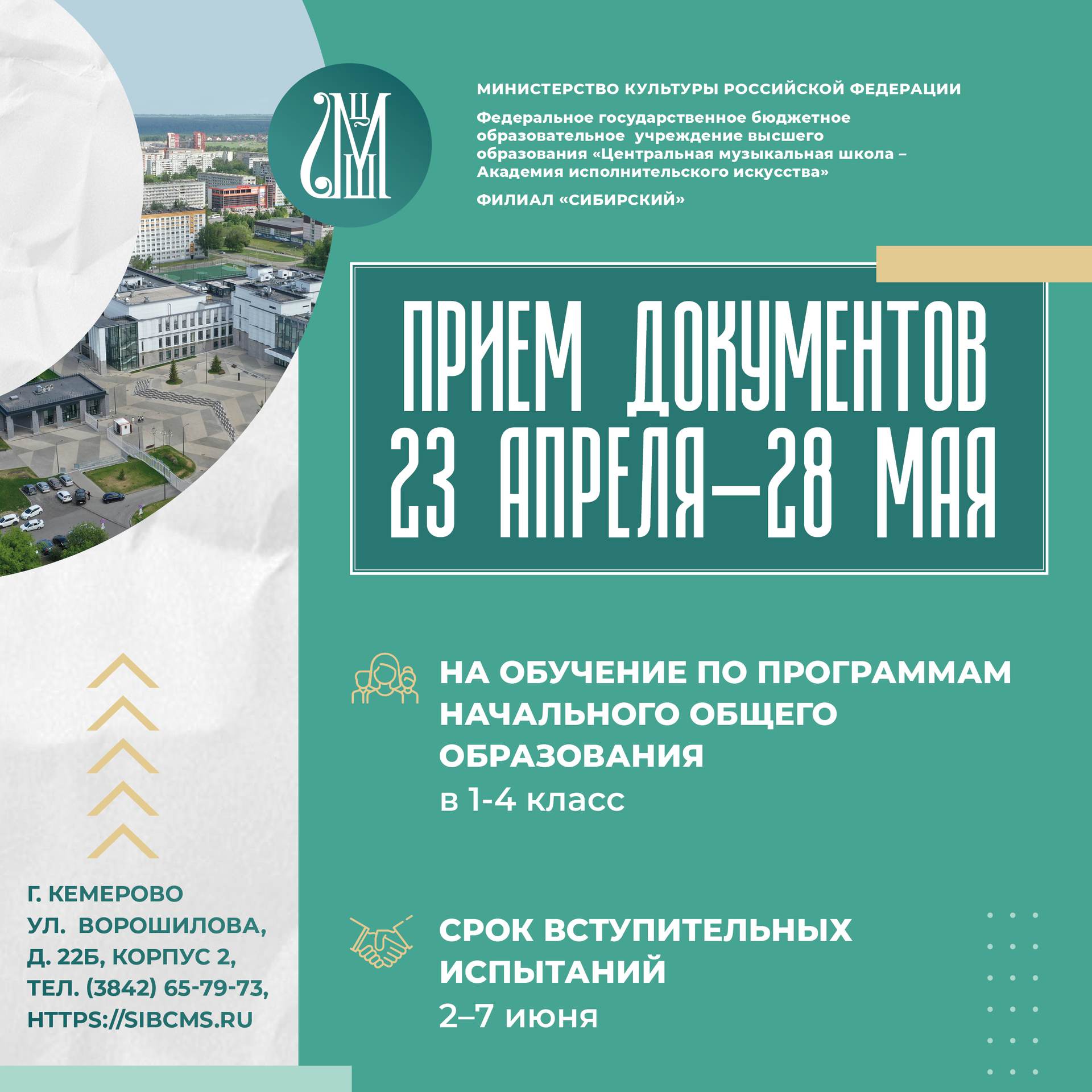 Филиал «Сибирский» Центральной музыкальной школы – Академии исполнительского искусства в г. Кемерово начинает прием документов поступающих на обучение по программам начального общего образования