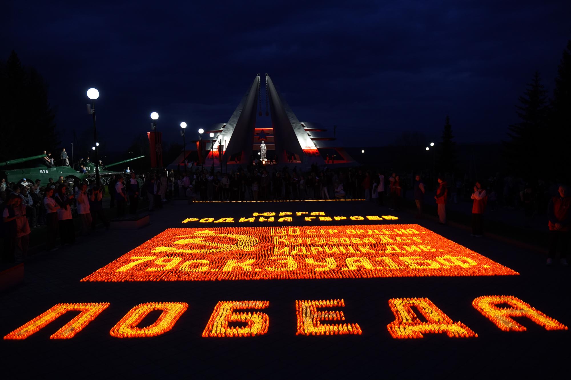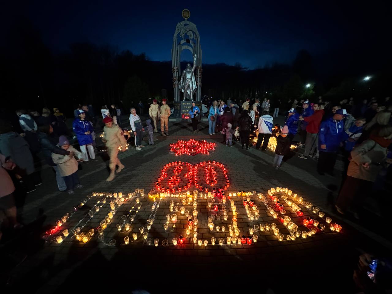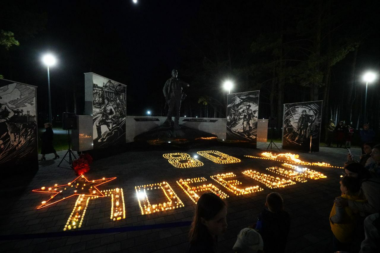 В Кемеровском муниципальном округе к памятникам и обелискам пришли около 2 тысяч жителей. Так, у мемориала «Дважды Победители» в поселке Металлплощадка из более чем 500 зажженных свечей создали цифру «80» и слово «Победа» — символ нашего бессмертного героизма и памяти.