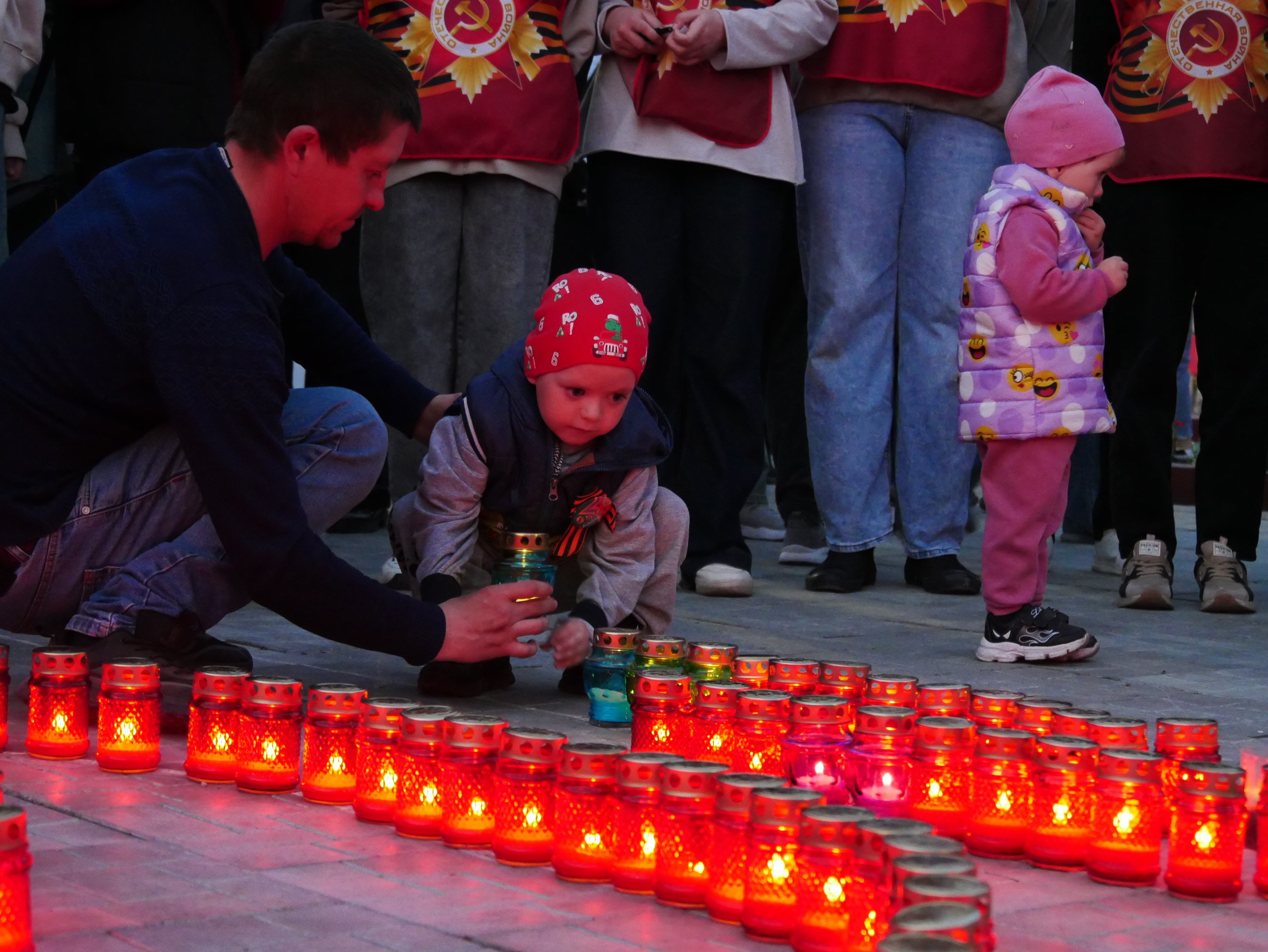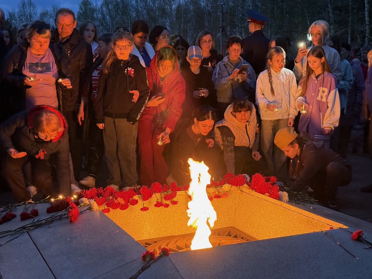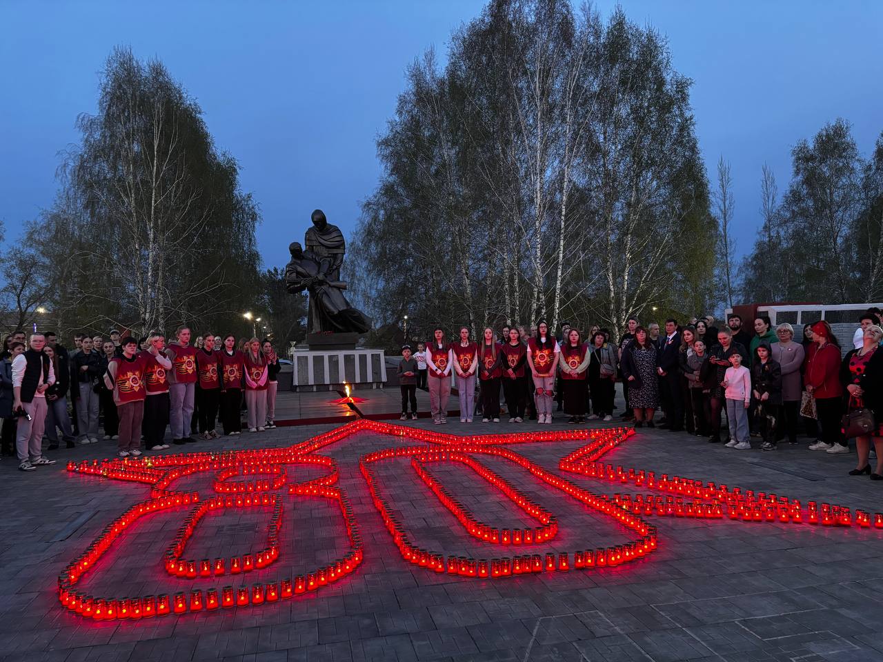 В Кемеровском муниципальном округе к памятникам и обелискам пришли около 2 тысяч жителей. Так, у мемориала «Дважды Победители» в поселке Металлплощадка из более чем 500 зажженных свечей создали цифру «80» и слово «Победа» — символ нашего бессмертного героизма и памяти.