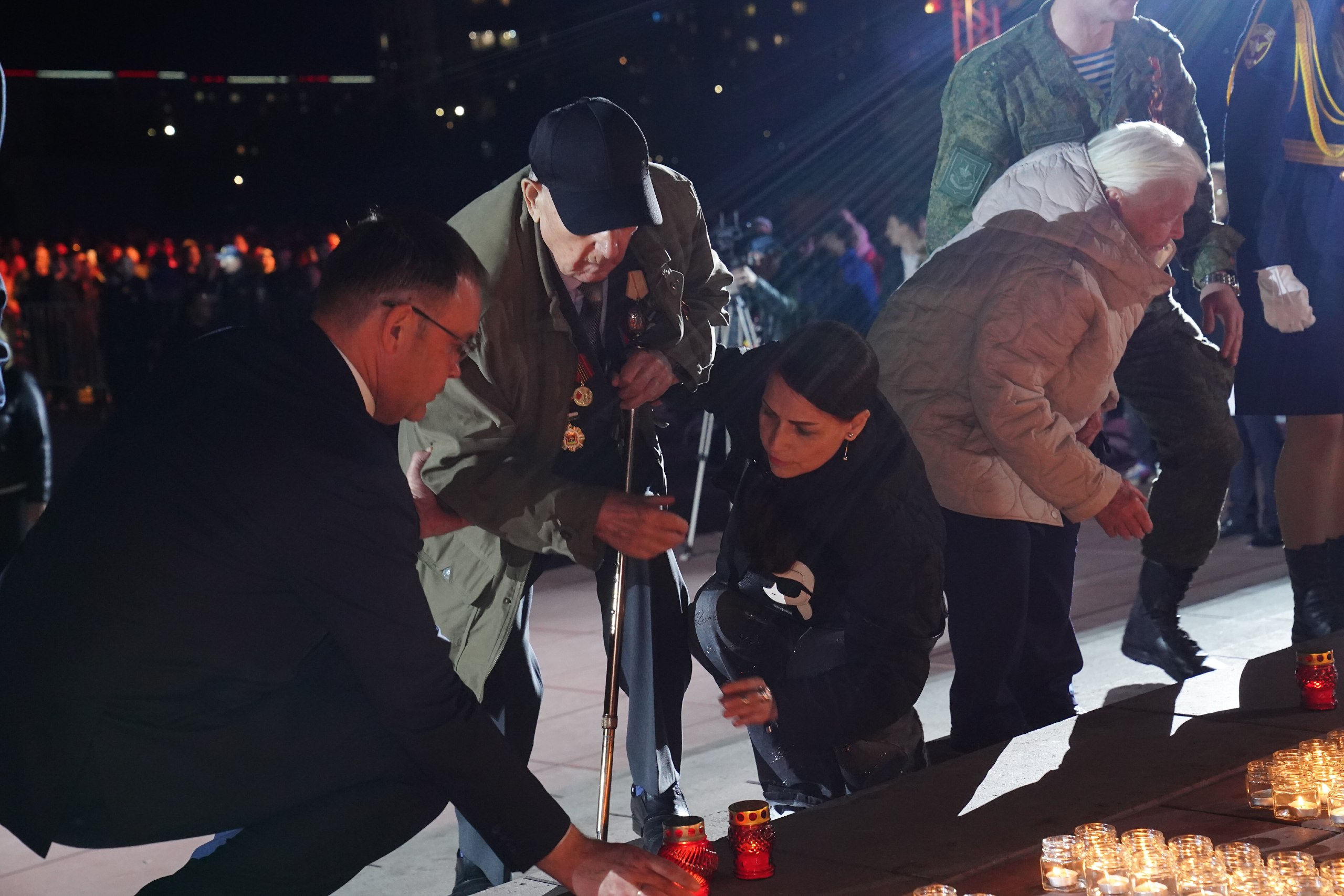 Во всех муниципалитетах Кузбасса на мемориалах прошла Всероссийская патриотическая акция «Свеча памяти», в ней приняли участие 60,5 тысячи человек. В Кемерове тысячи людей пришли к Мемориалу Воину-Освободителю. В знак общенародной скорби и благодарности всем тем, кто до последнего вздоха отстаивал свою Родину в годы Великой Отечественной войны, зажглись 4,5 тысячи свечей. У подножья монумента из свечей выложили цифру «80» и слово «Победа».«В годы войны более 60 тысяч кемеровчан сражались на фронтах, 11 тысяч не вернулись домой. В Кемерово было эвакуировано 40 предприятий. Так, в город вместе с Ногинским машиностроительным заводом приехал и мой дед. 17-летним парнем он с товарищами под открытым небом разворачивал здесь производство патронов и снарядов для фронта. Здесь отливали корпуса для мин, изготавливали заряды для гаубиц, патроны для винтовок. Каждый третий снаряд начинялся кемеровским порохом. В городе были развернуты 12 госпиталей, где спасали жизни раненых бойцов. За весомый вклад в Великую Победу по решению Президента России Владимира Владимировича Путина городу Кемерово присвоено звание «Город трудовой доблести». В Кузбассе сейчас четыре города носят это высокое звание», — подчеркнул губернатор Илья Середюк.