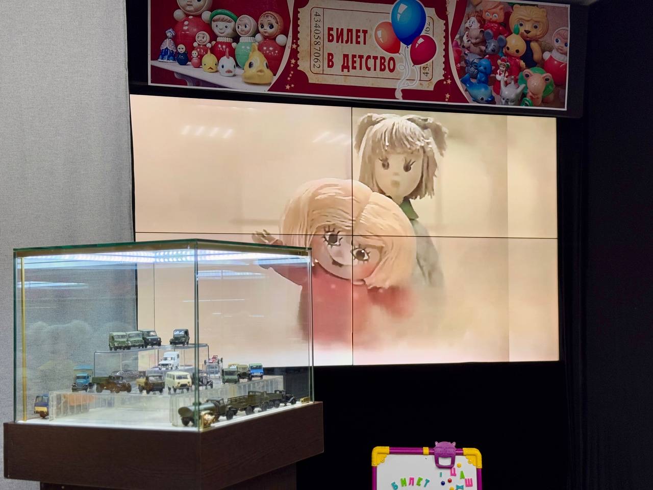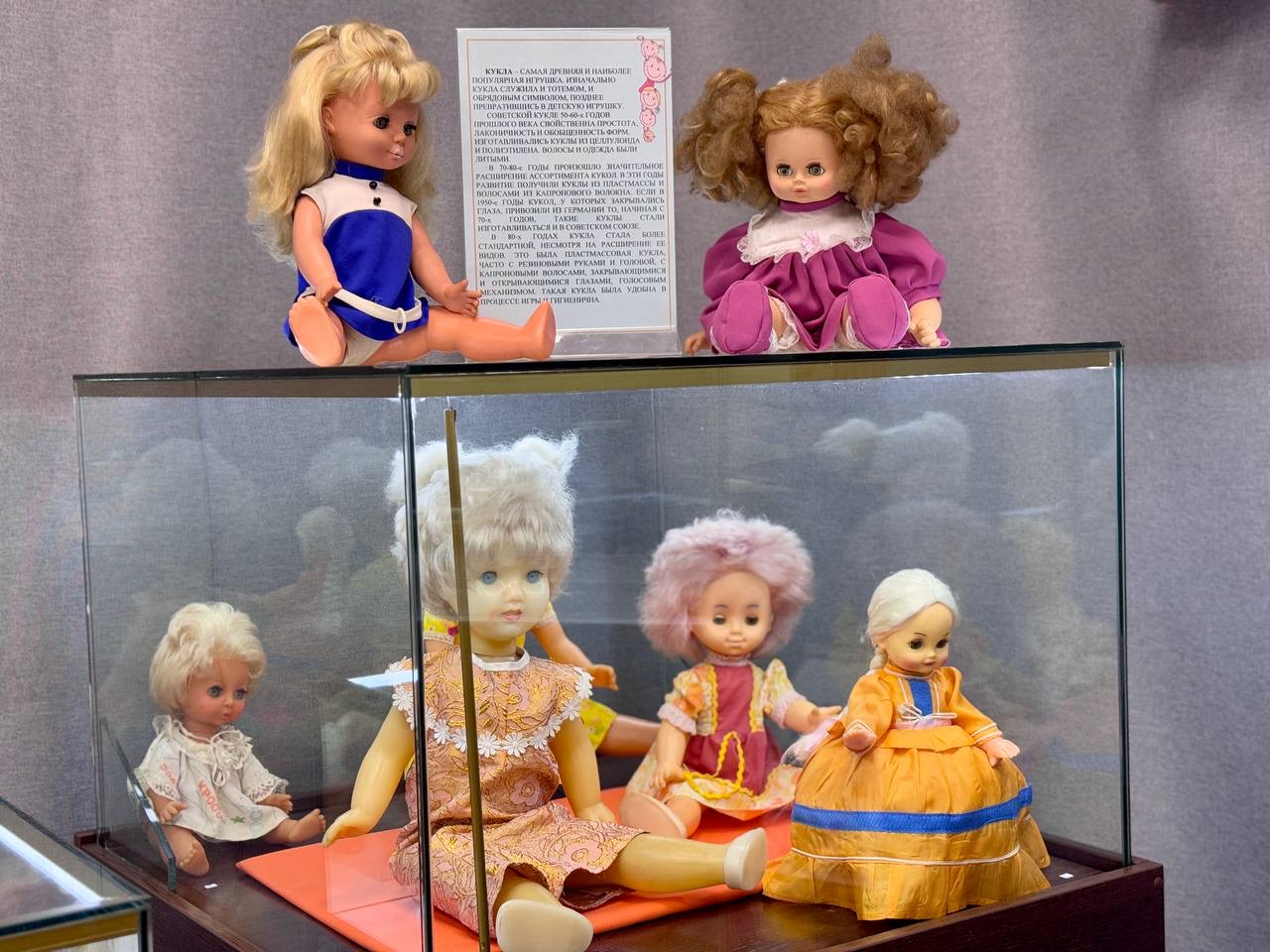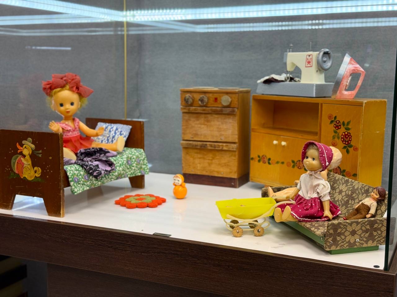 В Анжеро-Судженске для юных жителей города в краеведческом музее открылась выставка «Билет в детство». В экспозиции представлены советские игрушки: куклы, машинки, плюшевые мишки, неваляшки, кукольная мебель и посуда, а также настольные игры XX века.