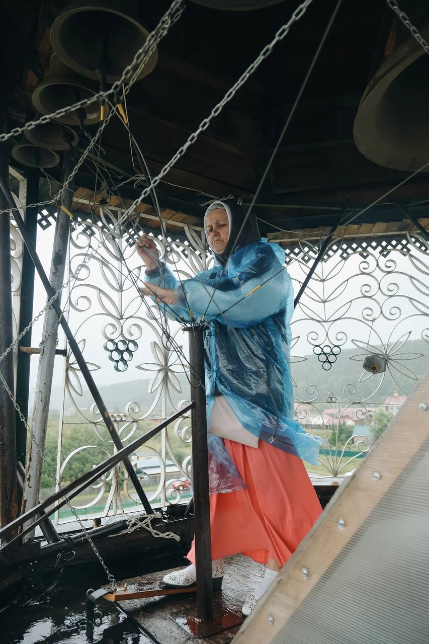 Архиепископ Ефрем также принял участие в концерте колокольного звона, исполнив на колокольне свой звон.