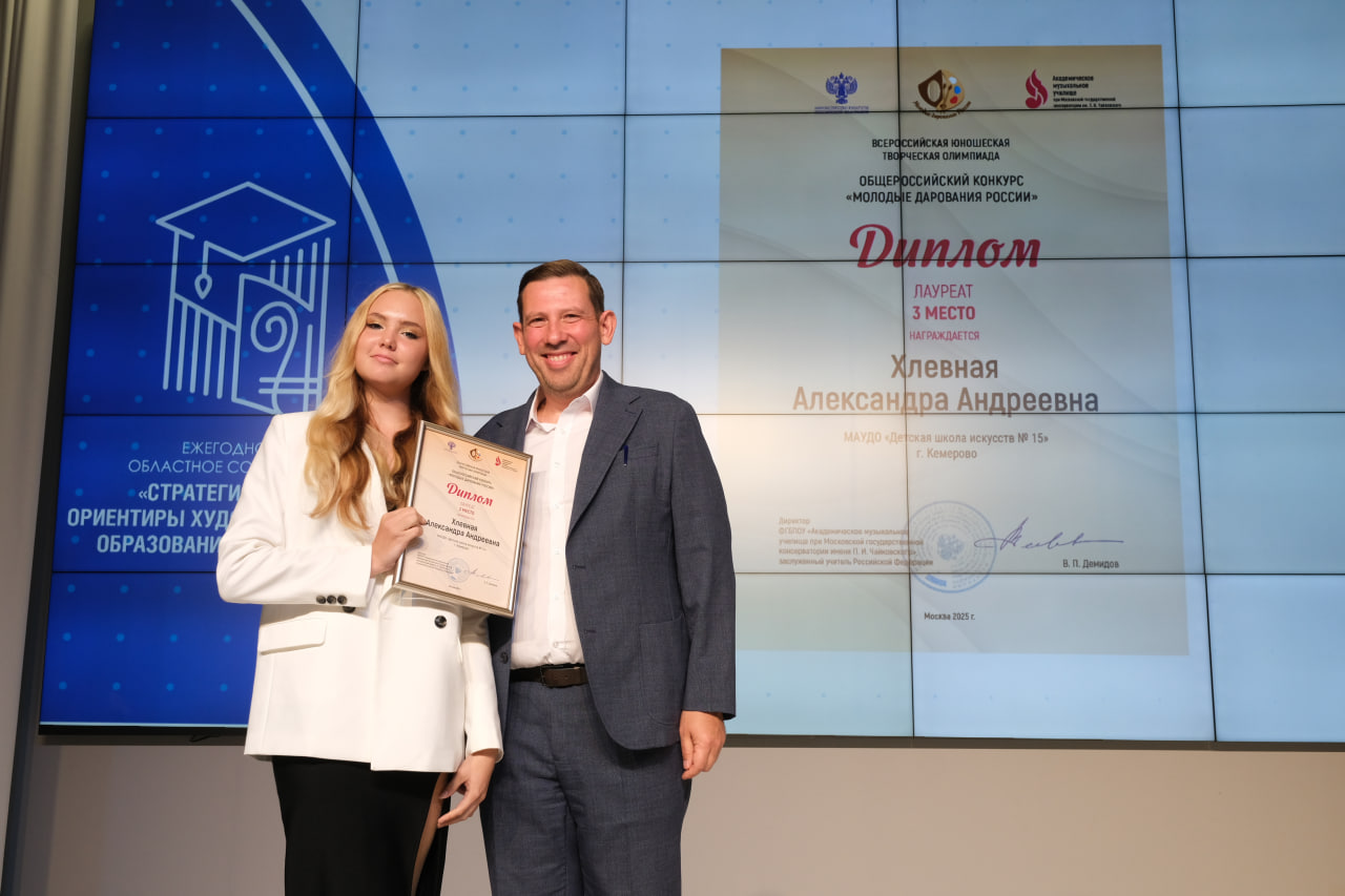 В региональном этапе конкурса «Лучшая детская школа искусств» в номинации «Лучшая городская ДШИ» первое место заняла Детская художественная школа №8, г. Прокопьевск, в номинации «Лучшая сельская ДШИ» — Детская музыкальная школа №22, Мариинский муниципальный округ. Победители получили сертификаты номиналом 1 млн рублей на развитие учреждений. В региональном этапе конкурса «Лучший преподаватель детской школы искусств» определены два победителя: Е. Шардакова (преподаватель ДШИ №22, г. Гурьевск), Д. Черноскутова (преподаватель ДМШ №12, Ленинск-Кузнецкий муниципальный округ). Победителем конкурса «Первый среди равных» стала К. Цуканова (ДШИ №46, г. Кемерово). Также были награждены победители и призеры общероссийского конкурса «Молодые дарования России» — всероссийской юношеской олимпиады в области искусств — 2025. Заслуженные награды получили 22 юных дарования Кузбасса. Ребята занимаются разными видами искусства и обучаются в детских школах искусств и творческих колледжах региона.