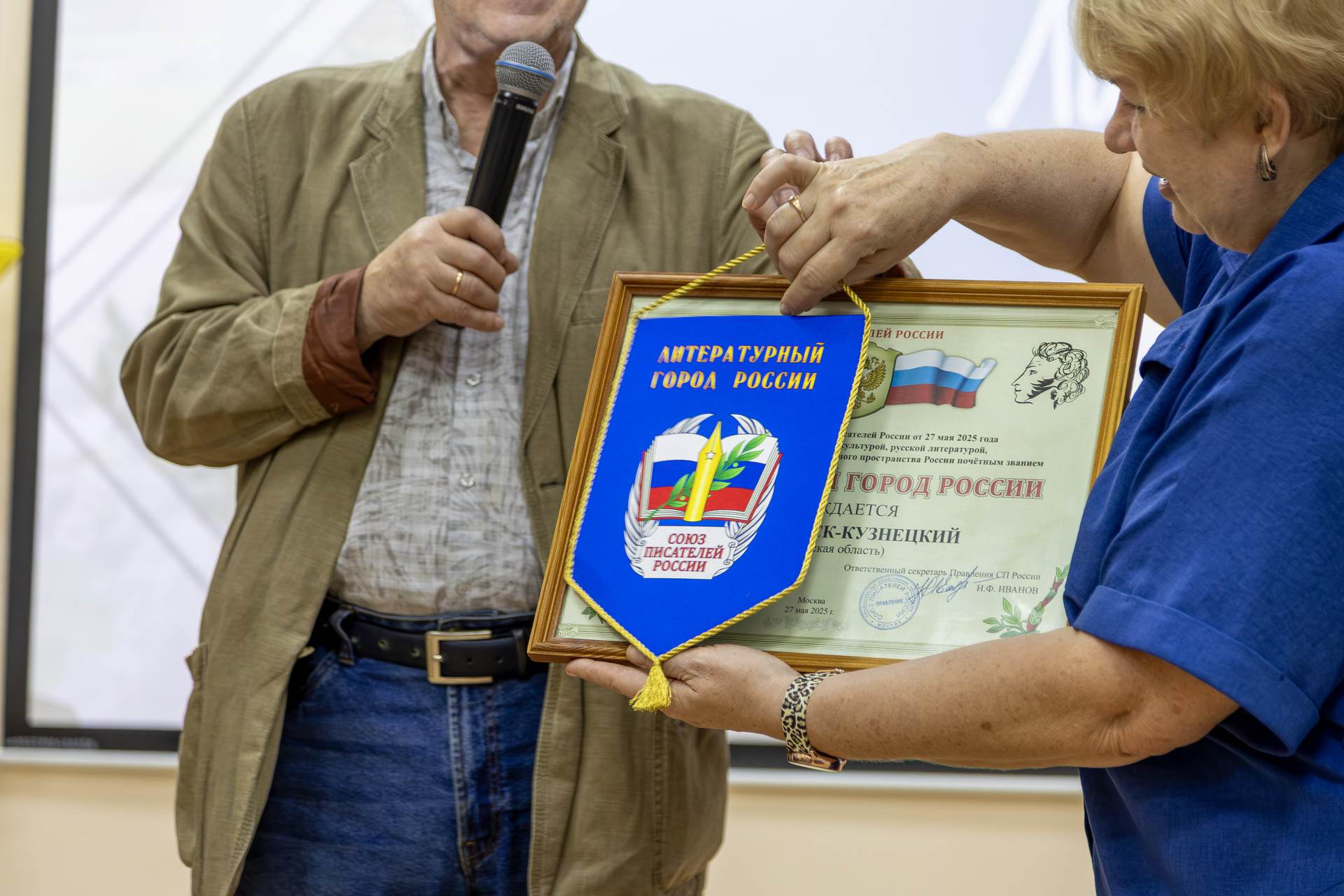 В Центральной городской библиотеке им. Н.К. Крупской прошла торжественная церемония награждения. Звание «Литературный город России» присвоено городу Ленинск-Кузнецкий.Решение о присвоении звания было принято секретариатом Союза писателей России 27 мая 2025 года.