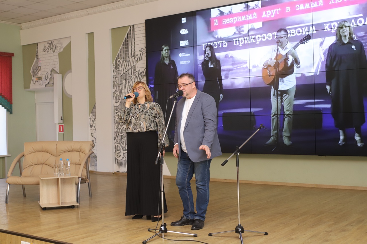 Наталья Мурзина, участница встречи, рассказала о работе кузбасских волонтёров, помогающих фронту и жителям Донбасса. Вечер завершился исполнением песни «Тыловая», написанной Натальей Мурзиной и Максимом Шампоровым. Песню исполнили Татьяна Чукреева и сама автор.