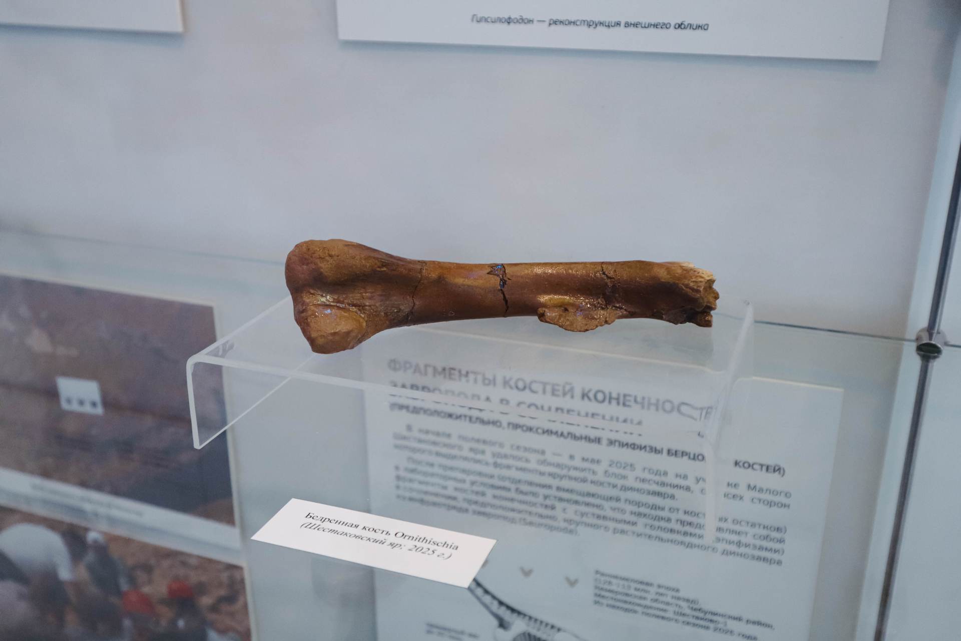 В частности, были представлены уникальные научные находки, сделанные на местонахождениях Шестаково-1, Шестаково-3, Кочегур и урочища Янтарная горка. Среди них: фрагменты костей конечностей завроподов, остатки тиреофоров — представителей группы панцирных динозавров, редкие экземпляры древних растений, включая листья ископаемых деревьев и окаменевшие шишки хвойных пород, а также уникальный образец кузбасского янтаря возрастом порядка 100,5 млн лет.