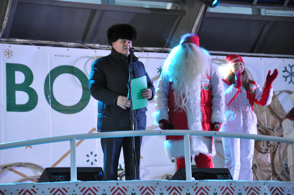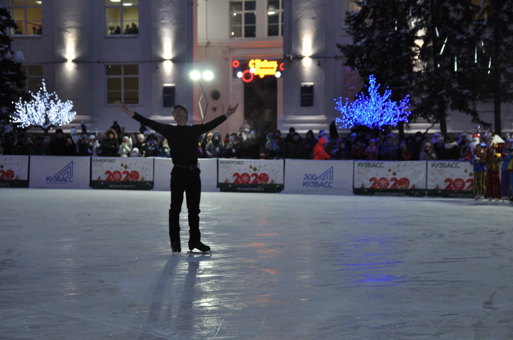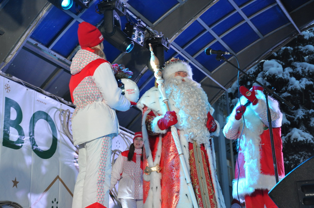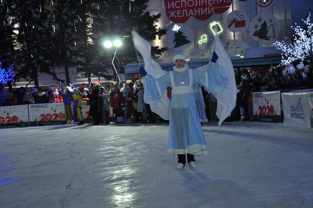Здесь, на площади Советов, также прошла большая развлекательная программа «Вместе встретим Новый год!». Гости праздника и Деды Морозы спели главную новогоднюю песню Кузбасса.
