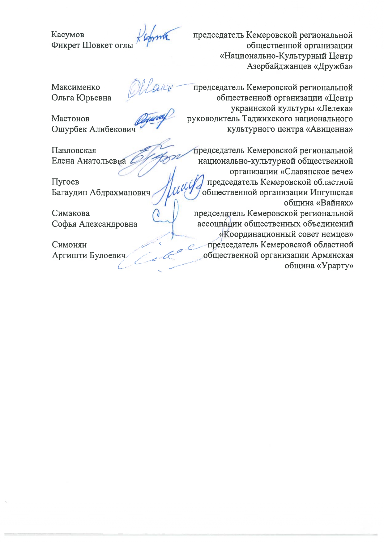 В знак солидарности члены Межнационального совета подписали петицию, в которой говорится: