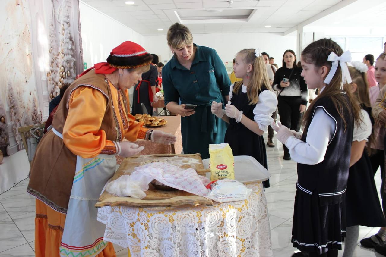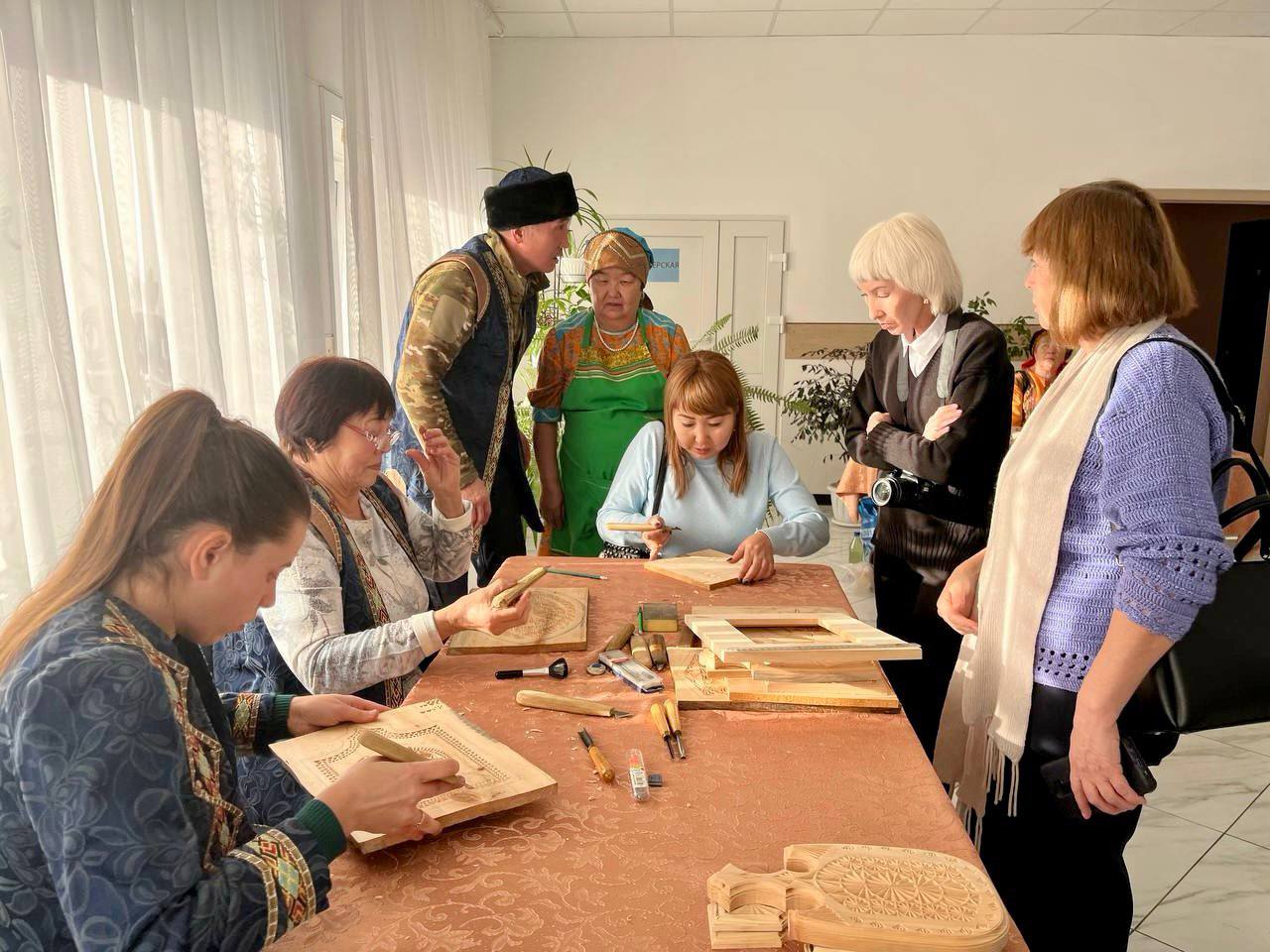 Работало несколько локаций: выставка шорских музыкальных инструментов прикладного творчества, шорская национальная кухня и мастер-класс «Резьба по дереву».