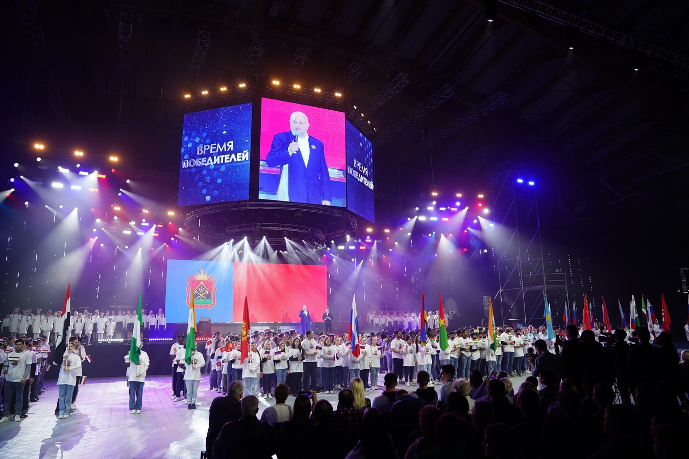 В КуZбассе завершается II Международный фестиваль Юрия Гагарина. Сегодня гала-концерт «Время победителей. Полет в будущее» проходит одновременно в Ледовом дворце «КуZбасс» в Кемерове и в Арене Кузнецких металлургов им. Олега Короленко в Новокузнецке.