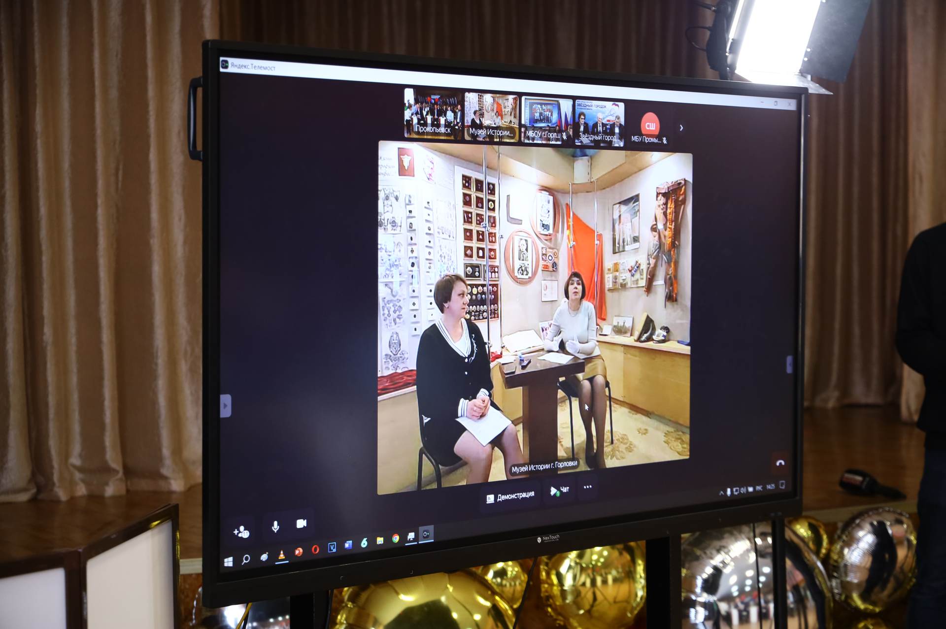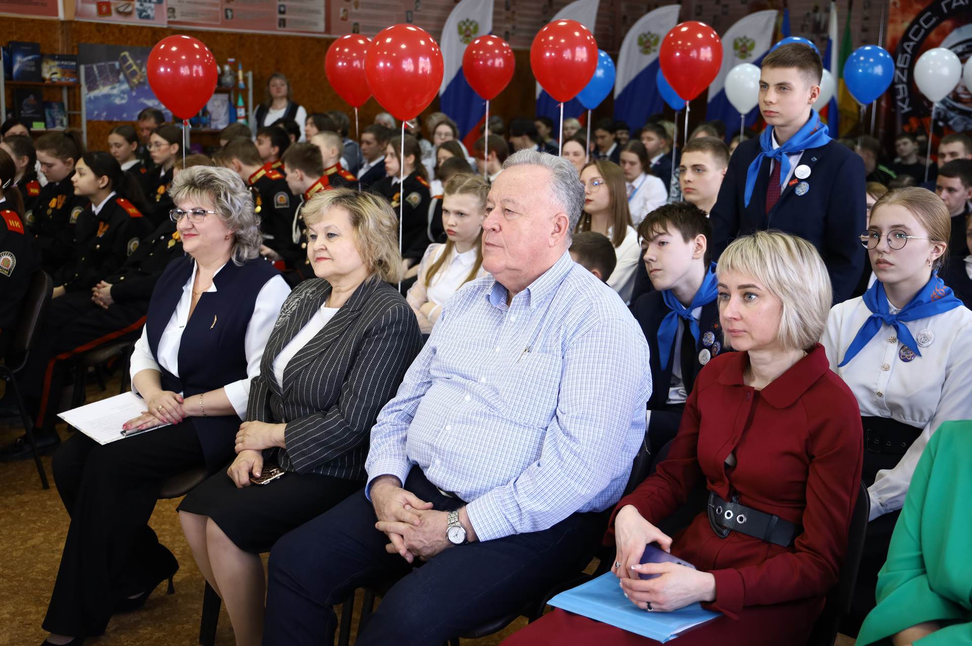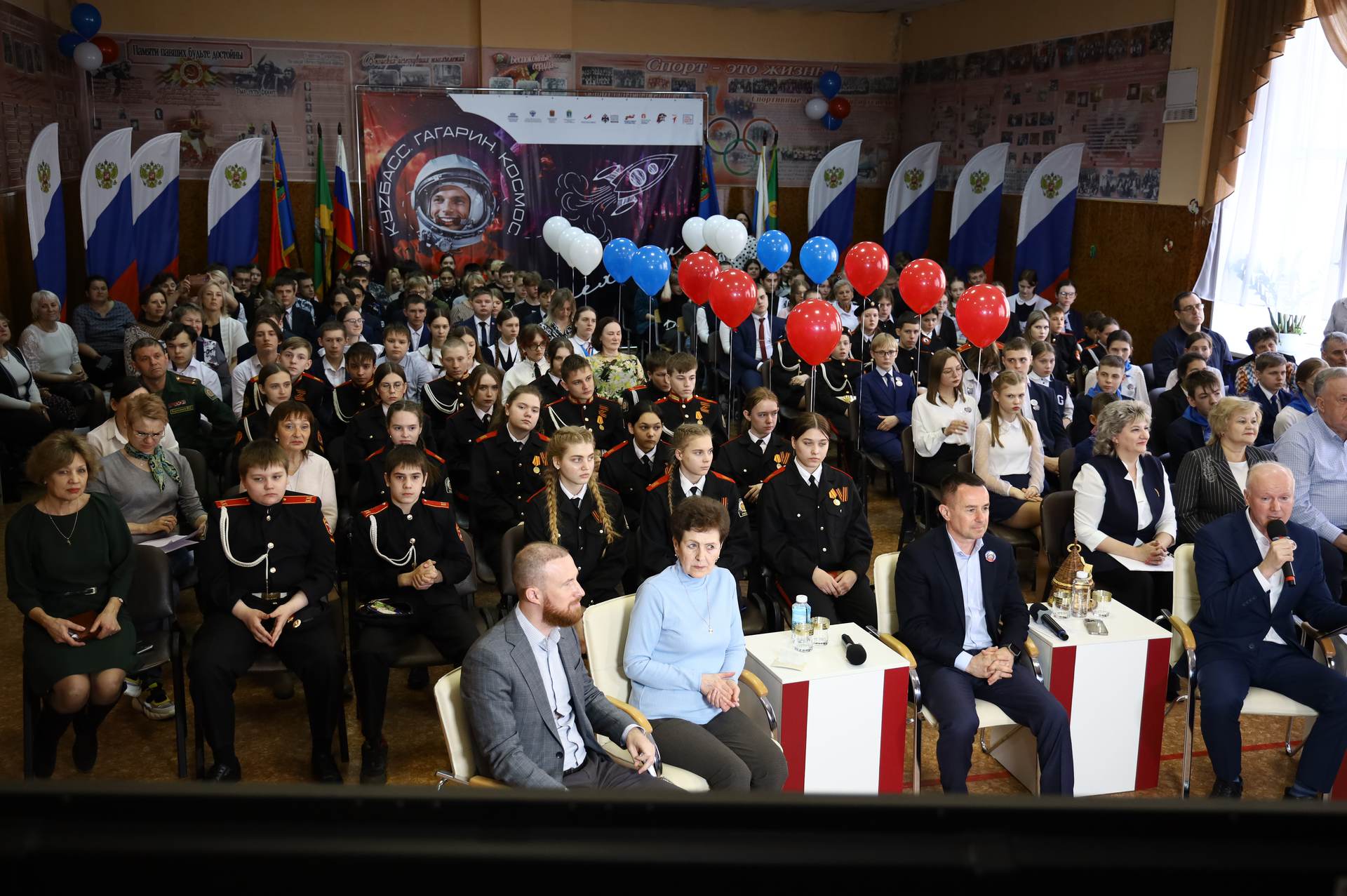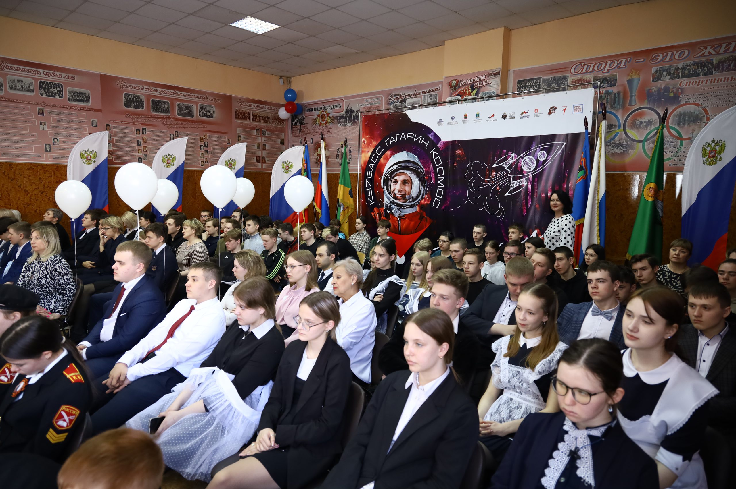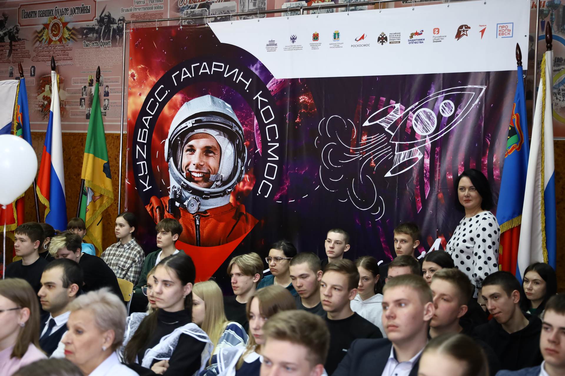 В Кузбассе трансляция телемоста велась из прокопьевской школы № 1 имени Б.В. Волынова, в ДНР — из школы №25 Горловки и музея истории города, а в Звездном городке — из ЦУРа.