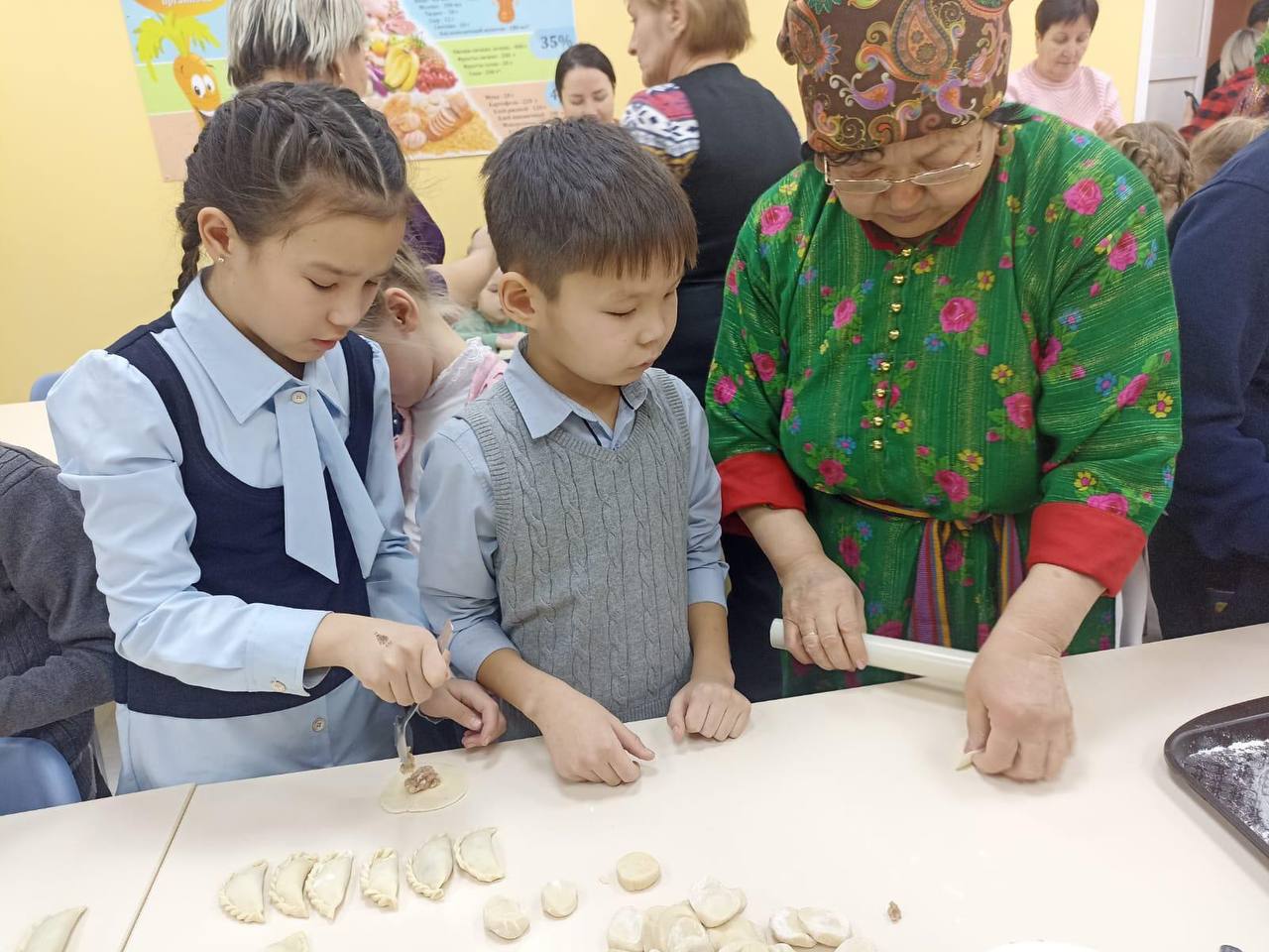 В деревне Шанда Гурьевского округа коллектив СДК побывал в гостях в Раздольнинской школе. Под увлекательный рассказ о традициях и обрядах дети и педагоги учились лепить традиционные телеутские пельмени.