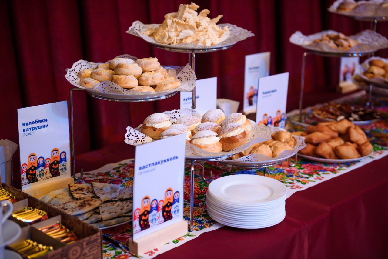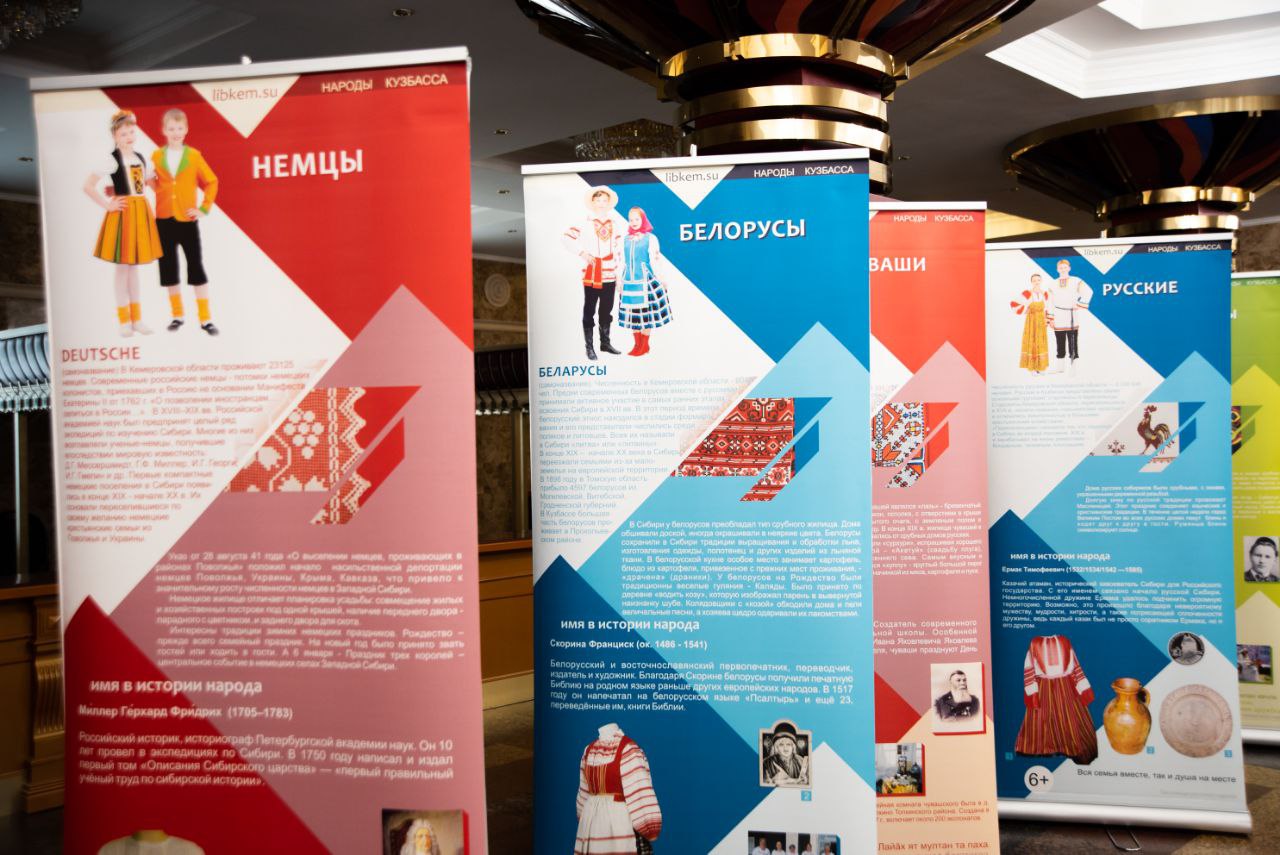 Участникам были представлены стенды с информацией о народах Кузбасса, организован фуршетный стол с дегустацией национальных блюд, проведена трансляция мелодий народов, проживающих в России.