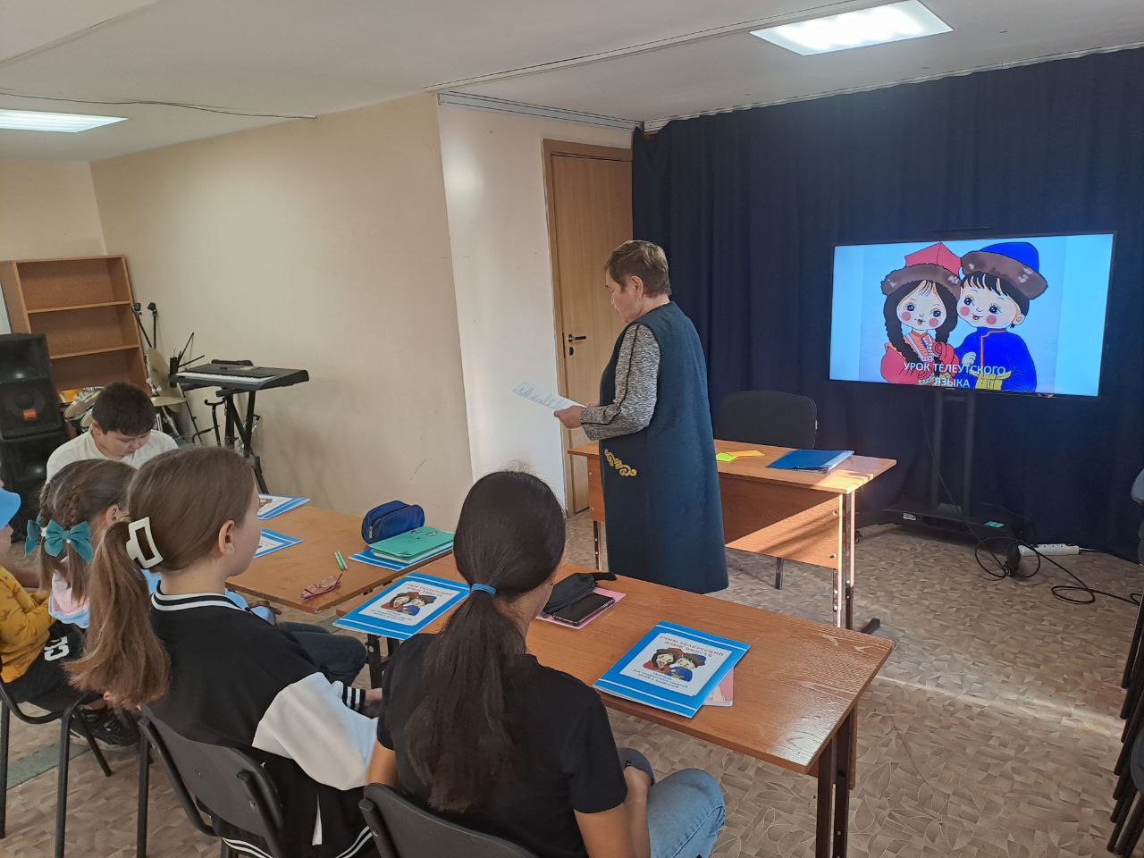 В рамках проекта «Клуб общения на родном языке «Тулған тилим» («Родной язык») жители Беловского городского округа Кузбасса бесплатно совершенствуют или осваивают с нуля грамматику, произношение и правописание родного телеутского языка. Первый урок в этом учебном году провела почетный работник общего образования РФ, ветеран педагогического труда Тамара Якучакова.В рамках международного десятилетия родных языков коренных народов уделяется особое внимание разработке образовательной программы по изучению телеутского языка и изданию учебной литературы. На уроке преподаватель представила детям рабочую тетрадь по телеутскому языку для совместных занятий детей и родителей, которая издана при поддержке Министерства культуры и национальной политики Кузбасса.