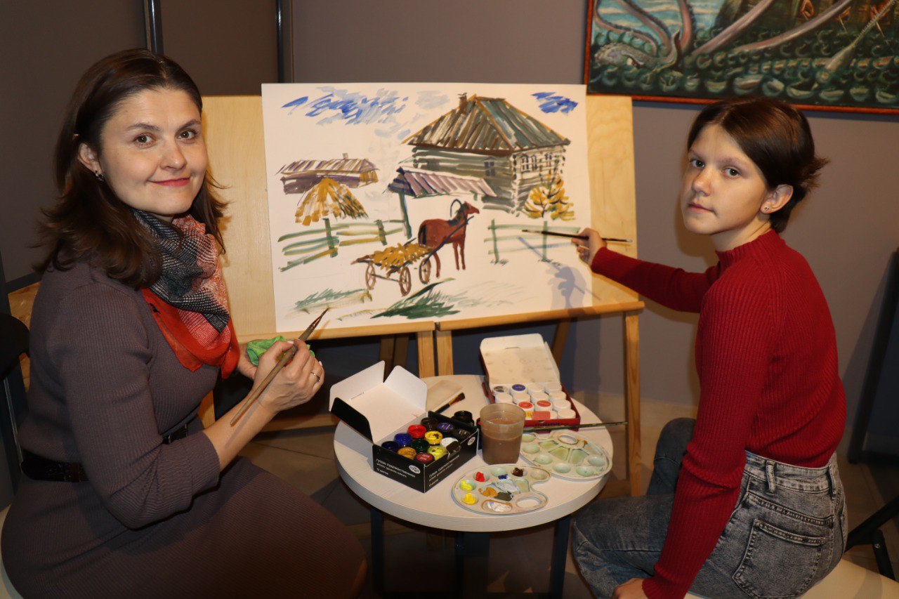 Гостями выставки стала семья прямых потомков первопоселенца города Федора Белова. Члены семьи профессионально занимаются живописью. Для посетителей выставки они провели мастер-класс по созданию эскиза будущей картины. Семья Челухоевых провела мастер-класс по изготовлению платков.