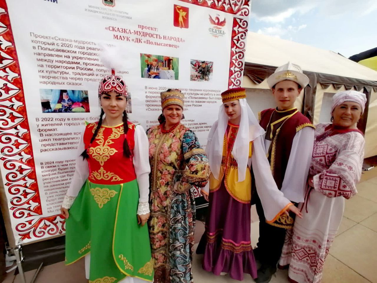 Проект представил Полысаевский городской округ на площадке «Семейные выходные в Кузбассе». Локации были оформлены по мотивам славянских и мусульманских национальных сказок.Народные сказительницы в национальной одежде, используя музыкальные национальные инструменты (варган, домбра), рассказали русскую, белорусскую и татарскую народные сказки. Все желающие смогли угоститься национальными сладостями и традиционным чаем.