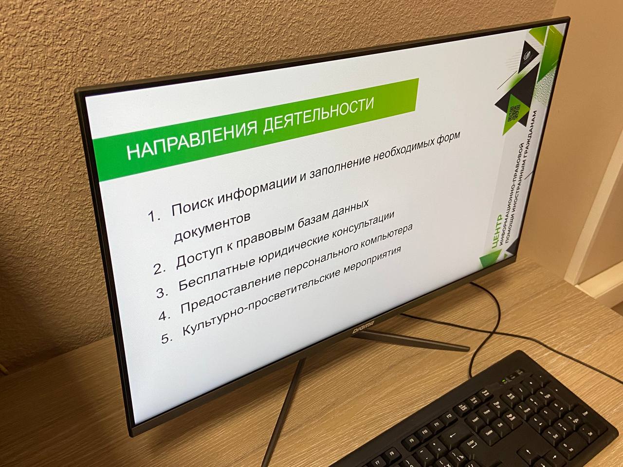 Центр информационно-правовой помощи иностранным гражданам был открыт в 2023 году на базе Государственной научной библиотеки Кузбасса им. В.Д. Федорова. Идея создания площадки поддержана на федеральном уровне. Цель его работы – познакомить иностранцев с регионом, российским законодательством, а также с культурой, традициями и обычаями русского народа через проведение мероприятий, оказание квалифицированной помощи в поиске информации и заполнении необходимых документов, связанных с трудовыми, медицинскими и другими насущными вопросами, предоставление доступа к информационно-правовым базам данных, организация бесплатных юридических консультаций.